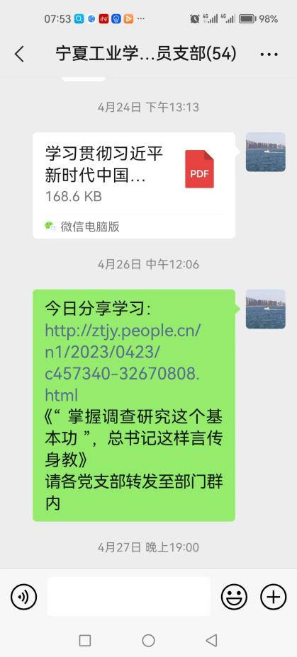 黨支部在主題教育中,認(rèn)真學(xué)習(xí)貫徹黨的二十大精神,以習(xí)近平新時(shí)代中國(guó)特色社會(huì)主義思想為指導(dǎo),篤實(shí)踐行習(xí)近平總書(shū)記關(guān)于老干部工作重要指示,圍繞“黨建引領(lǐng)凝心鑄魂”,以主題教育為抓手,落實(shí)“三會(huì)一課”制度。學(xué)用貫通,知行合一,做好黨建共建,促進(jìn)主題教育有力開(kāi)展;送學(xué)上門(mén),支部微信群推送主題教育學(xué)習(xí)內(nèi)容,切實(shí)推進(jìn)主題教育入腦入心,做好離退休干部教育管理。