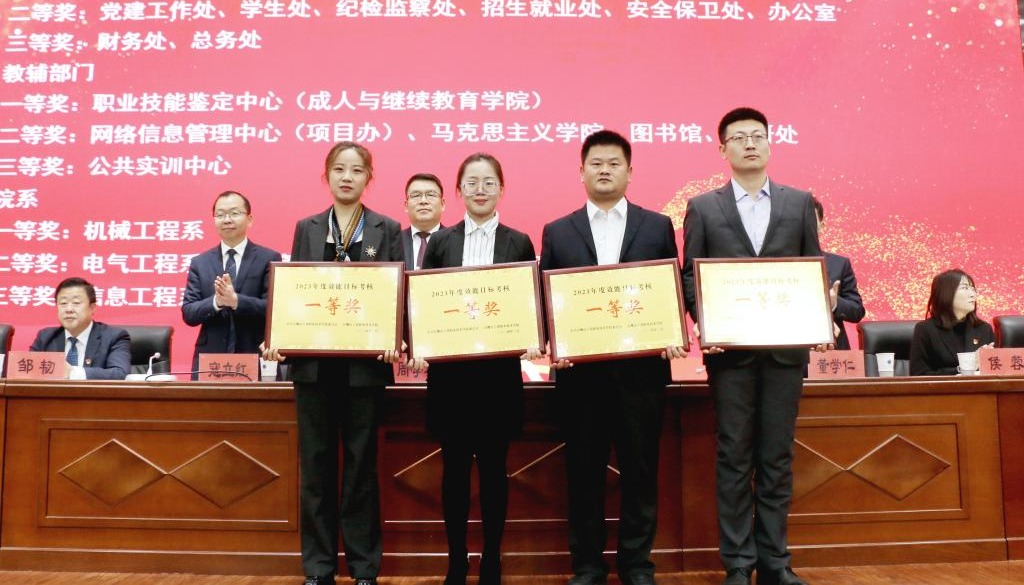 大會(huì)上,通報(bào)了2023年效能目標(biāo)管理考核結(jié)果,表彰了2023年年度考核優(yōu)秀等次人員、2023年度招生就業(yè)工作先進(jìn)個(gè)人、就業(yè)工作先進(jìn)集體。機(jī)械工程系副主任蘭晏文、電氣工程系副主任劉博雅、商貿(mào)管理系教師宋仁娟、商貿(mào)管理系教師王曉紅分別圍繞工作實(shí)際,總結(jié)2023年日常工作、招生就業(yè)工作經(jīng)驗(yàn),做了交流發(fā)言。