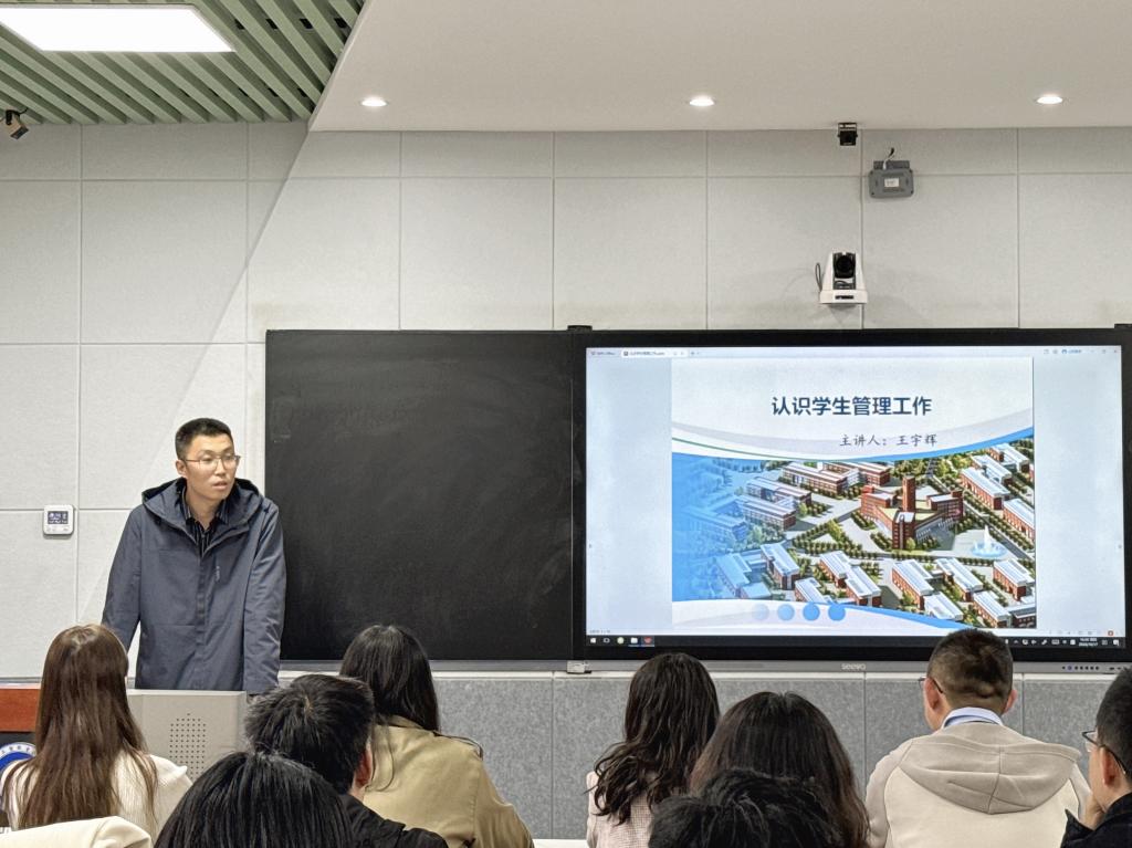 學(xué)生處負(fù)責(zé)人王宇輝以“認(rèn)識(shí)學(xué)生管理工作”為主題結(jié)合自身工作經(jīng)驗(yàn),從班級(jí)日常管理到心理健康教育,全方位解讀了學(xué)生管理工作的內(nèi)涵與外延。通過(guò)典型案例分析,新教師們了解了學(xué)生管理工作的復(fù)雜性,還學(xué)會(huì)了以科學(xué)、人性化的方式關(guān)愛(ài)學(xué)生,促進(jìn)其全面發(fā)展。