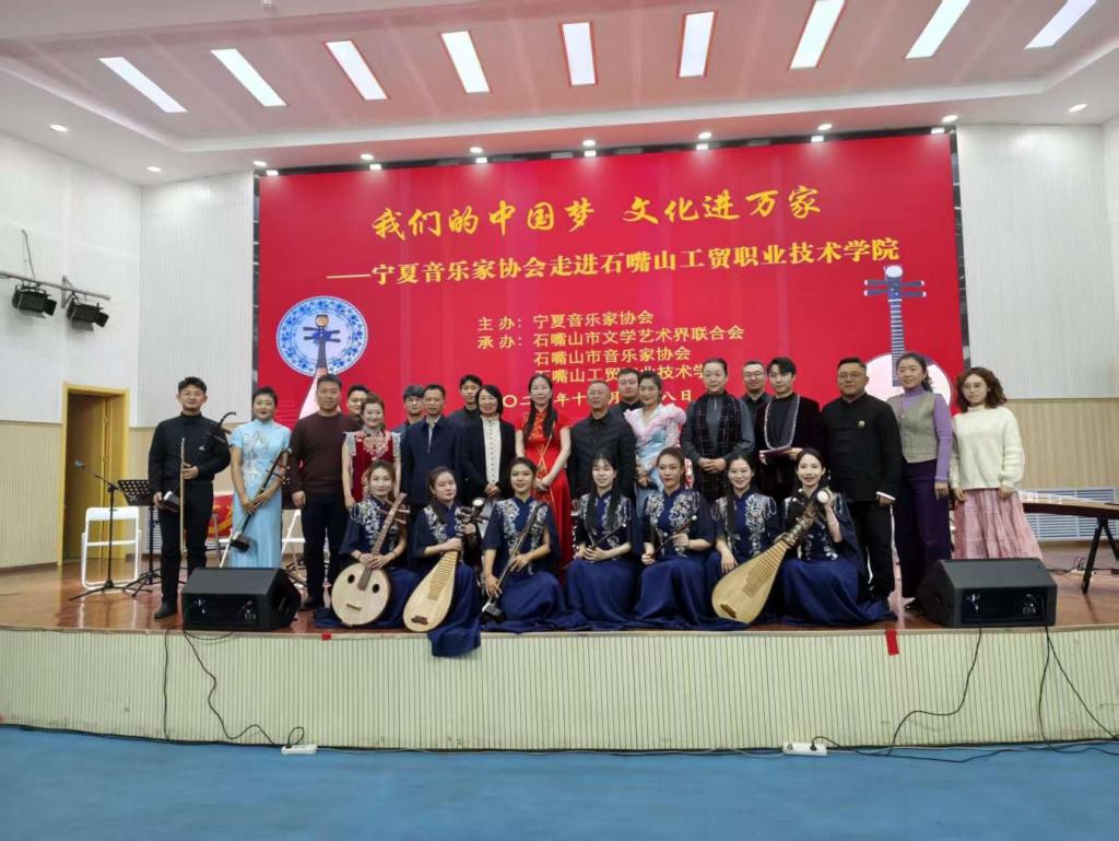 11月28日,由寧夏音樂家協(xié)會主辦、石嘴山文學藝術界聯(lián)合會承辦、石嘴山音樂家協(xié)會協(xié)辦的“我們的中國夢 文化進萬家”活動走進石嘴山工貿職業(yè)技術學院。活動以弘揚中華優(yōu)秀傳統(tǒng)文化為核心,為師生呈現(xiàn)了一場兼具藝術感染力與文化底蘊的視聽盛宴。