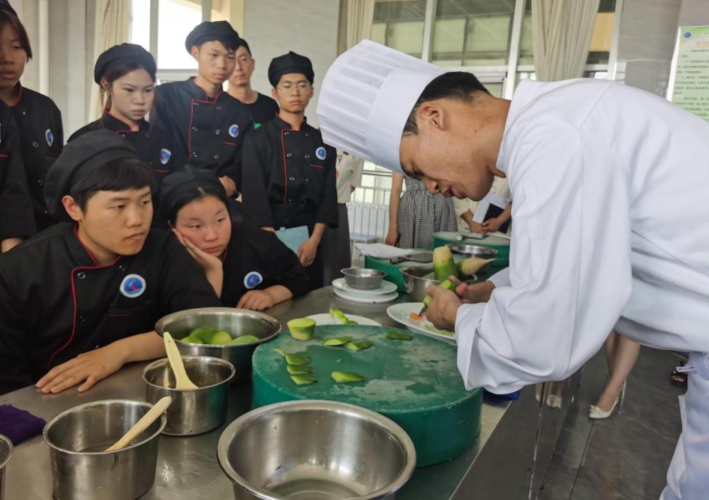 烹飪專業(yè)教師李芃的實(shí)訓(xùn)課程《冷拼荷葉的制作》,以制作山水類冷拼作品《荷塘小景》中的“荷葉”為內(nèi)容,旨在指導(dǎo)學(xué)生掌握冷拼荷葉的底托、葉面等制作的關(guān)鍵動(dòng)作要領(lǐng)及注意事項(xiàng)。演示規(guī)范、講解細(xì)致、通俗易懂,教學(xué)環(huán)節(jié)完整,成功的上了一節(jié)典型的做中教、做中學(xué)、教學(xué)合一的公開課。