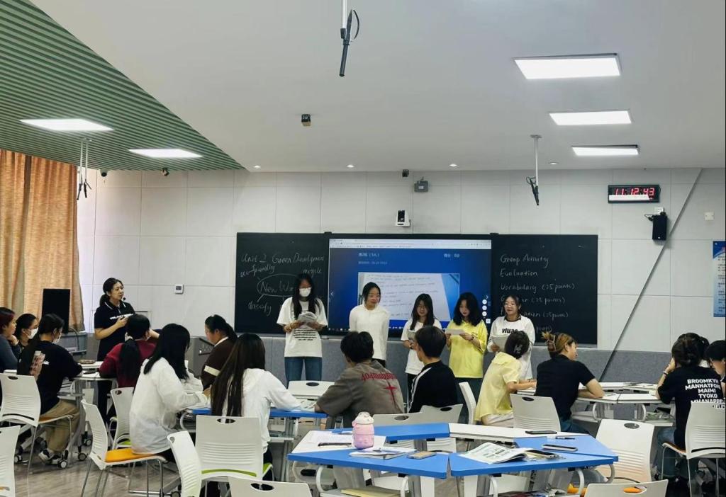 英語教師徐博宇本次授課的主題為《Green Development(綠色發(fā)展)》。以圖片、情景模擬等啟發(fā)性活動(dòng)引入單元主題,引導(dǎo)學(xué)生主動(dòng)參與課堂活動(dòng),充分激發(fā)學(xué)生興趣,引導(dǎo)學(xué)生對本單元的主題進(jìn)行思考。在課堂中熟練使用信息化教學(xué)手段,使教學(xué)過程更生動(dòng)、直觀。采用多元化評(píng)價(jià)手段,多角度、全方位地對學(xué)生的課堂表現(xiàn)進(jìn)行評(píng)估。師生全面互動(dòng)的教學(xué)模式生動(dòng)地詮釋了以學(xué)生為主體的先進(jìn)教學(xué)理念。