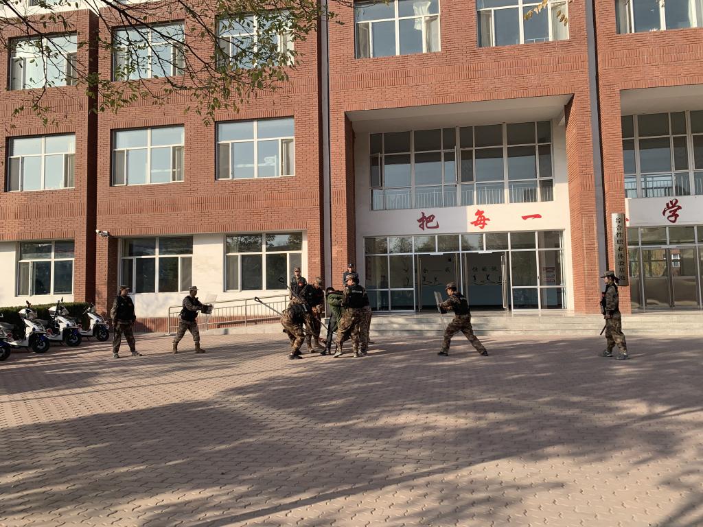 首先韓恩寬副院長向觀摩團(tuán)介紹學(xué)院教官團(tuán)隊,教官現(xiàn)場開展“防暴演練”,演練學(xué)院在遭遇“不法分子”持械襲擊師生的情況下,迅速反應(yīng)控制“不法分子”的過程,展示了學(xué)院突發(fā)治安事件迅速處置的能力。隨后,觀摩團(tuán)集體參觀學(xué)院安防指揮中心,安全保衛(wèi)處處長李曉旭從安全工作責(zé)任落實、學(xué)生突發(fā)事件處置、人防物防技防、準(zhǔn)軍事化管理等方面匯報學(xué)院整體安全及治安保衛(wèi)工作,從會商機(jī)制、法制教育、校園周邊綜合治理等方面匯報警校協(xié)作綜治工作。最后,大武口區(qū)政府副區(qū)長、大武口公安分局局長丁惠軍向觀摩團(tuán)做了補(bǔ)充匯報,對學(xué)院在治安、法制教育等方面的工作給予了高度肯定。