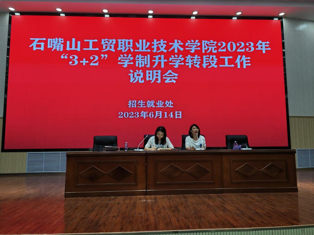 為進(jìn)一步推動(dòng)學(xué)院中高職一體化發(fā)展邁上新臺(tái)階,促進(jìn)中高職貫通培養(yǎng)工作銜接的順利開展,提高人才培養(yǎng)質(zhì)量,規(guī)范轉(zhuǎn)段升學(xué)工作,6月14日,石嘴山工貿(mào)職業(yè)技術(shù)學(xué)院招生就業(yè)處組織召開了2023年“3+2“學(xué)制升學(xué)轉(zhuǎn)段工作說明會(huì)。相關(guān)院系領(lǐng)導(dǎo)、班主任及373名20級(jí)3+2學(xué)制學(xué)生參加了此次說明會(huì)。