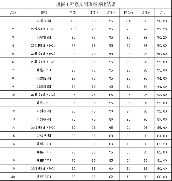 此次活動(dòng),中高職6個(gè)專業(yè)共計(jì)20個(gè)班參與評(píng)選。主要從班級(jí)視窗布置、衛(wèi)生角的設(shè)置擺放及班級(jí)整體衛(wèi)生三個(gè)方面開展,旨在以評(píng)促改,提高同學(xué)的環(huán)境衛(wèi)生意識(shí),締造美麗教室,展示班級(jí)風(fēng)采,彰顯班級(jí)特色,營造文化氛圍,使教室真正成為學(xué)生的學(xué)習(xí)樂園和幸福家園?;顒?dòng)前,機(jī)械工程系通過制定詳細(xì)的評(píng)比方案及評(píng)分表,利用晨、午檢細(xì)致安排活動(dòng)內(nèi)容及要求,教育引導(dǎo)各班級(jí)學(xué)生積極參與到此次評(píng)選活動(dòng)中來,養(yǎng)成良好的衛(wèi)生習(xí)慣,提高衛(wèi)生意識(shí),創(chuàng)造干凈、整潔、舒適的學(xué)習(xí)環(huán)境;活動(dòng)中,各班級(jí)積極投入,展示了他們對(duì)班級(jí)衛(wèi)生及文化建設(shè)的重視和努力。機(jī)械工程系副主任宋福亮帶領(lǐng)未承擔(dān)班主任工作的老師組成評(píng)委團(tuán),按照評(píng)分細(xì)則對(duì)各班級(jí)文化建設(shè)情況逐一檢查并完成評(píng)比打分。