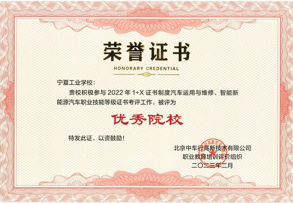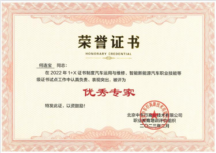 近日,由北京中車行高新技術(shù)有限公司職業(yè)教育培訓(xùn)評(píng)價(jià)組織主辦的“2022年‘1+X’證書制度汽車運(yùn)用與維修、智能新能源汽車職業(yè)技能等級(jí)證書考評(píng)工作、北京祥龍博瑞汽車服務(wù)有限公司2022年度‘1+X’證書試點(diǎn)工作總結(jié)表彰會(huì)在北京順利開幕。寧夏工業(yè)學(xué)校榮獲了2022年“1+X”證書制度汽車運(yùn)用與維修、智能新能源汽車職業(yè)技能等級(jí)證書考評(píng)工作優(yōu)秀院校,電氣工程系教師何連寶榮獲優(yōu)秀專家、先進(jìn)工作者等榮譽(yù)稱號(hào)。