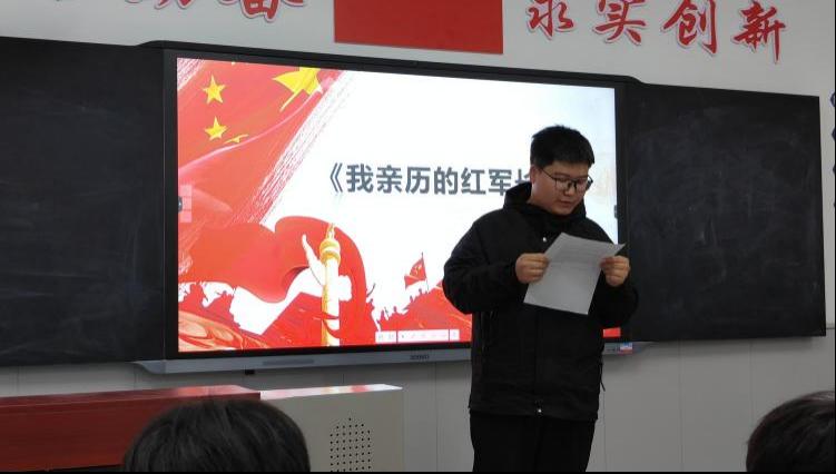活動(dòng)伊始,王凱同學(xué)為大家誦讀了一篇朱振漢烈士在1948年10月20日寫給母親的信《你辛苦撫育是有價(jià)值的》。“你兒子的死,是光榮的,為了全中國的人民解放而死是最有價(jià)值的?!庇H筆遺書,情真意切,令人動(dòng)容的字句充分詮釋了共產(chǎn)黨人的堅(jiān)定信仰、仁人志士的家國情懷,也把同學(xué)們帶回了近百年前那段風(fēng)雷激蕩的歲月,深刻感悟先烈們對黨、對國家、對民族的大愛與無私。
