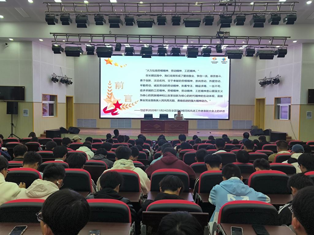 講座中,白虎虎勞模以“勞模精神、勞動精神、工匠精神”為主題,從弘揚勞模精神,傳承匠心力量、修的“匠心”,成就“尖兵”、知識改變命運,技能改變人生三部分,深情講述了自己的成長歷程和奮斗故事。他分享了自己從一名普通工人成長為技術能手、勞模工匠的故事,以及如何在工作中不斷追求卓越、精益求精的匠心精神。扎根一線近20年的“創(chuàng)新工匠”經(jīng)歷為現(xiàn)場的學子提供了寶貴的職業(yè)發(fā)展方向,引發(fā)了現(xiàn)場師生的熱烈反響。白虎虎勞模強調,技能是改變命運的關鍵,只有不斷學習、不斷實踐,才能掌握過硬的技術本領,為國家和人民做出更大的貢獻。