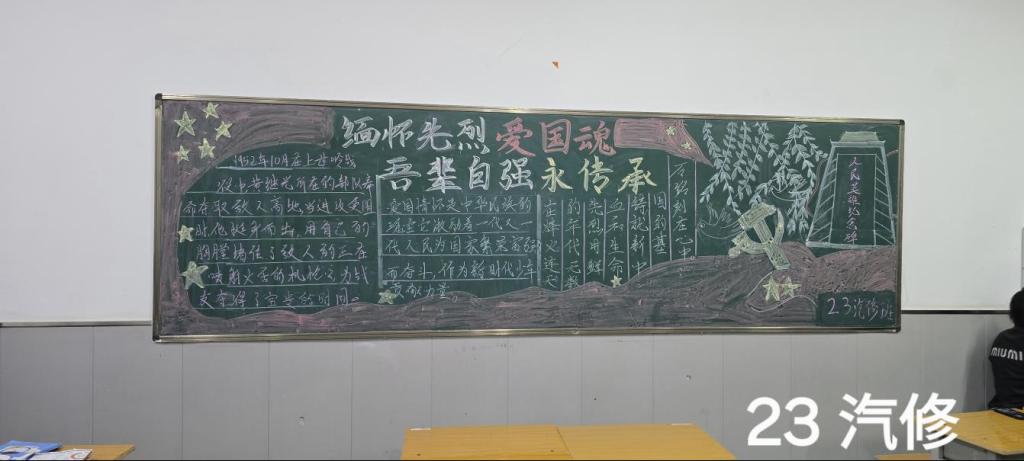 為弘揚革命先烈愛國精神,傳承紅色基因,豐富校園文化生活,近日,石嘴山工貿(mào)職業(yè)技術(shù)學院電氣工程系團委成功舉辦了以“緬懷先烈愛國魂,吾輩自強永傳承”為主題的黑板報活動。此次活動吸引了電氣工程系全體班級參與,各班同學積極響應(yīng),圍繞主題精心創(chuàng)作,用一幅幅精美的黑板報展現(xiàn)出對先烈的緬懷與傳承紅色精神的決心。