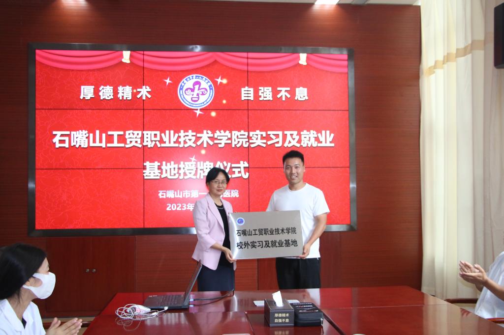 為進(jìn)一步貫徹黨的二十大精神,落實自治區(qū)黨委和政府關(guān)于開展“就業(yè)創(chuàng)業(yè)促進(jìn)年”活動的安排部署,促進(jìn)學(xué)院畢業(yè)生高質(zhì)量就業(yè),7月12日,石嘴山工貿(mào)職業(yè)技術(shù)學(xué)院商貿(mào)管理系社區(qū)康復(fù)專業(yè)與石嘴山市第一人民醫(yī)院實習(xí)基地合作簽約授牌儀式在石嘴山市第一人民醫(yī)院隆重舉行。石嘴山市第一人民醫(yī)院張靜虹副院長、寇博科長、趙衛(wèi)華主任,石嘴山工貿(mào)職業(yè)技術(shù)學(xué)院商貿(mào)管理系副主任王曉寧帶領(lǐng)社區(qū)康復(fù)專業(yè)部分老師及11名在石嘴山市第一人民醫(yī)院實習(xí)學(xué)生參加了此次簽約授牌儀式。