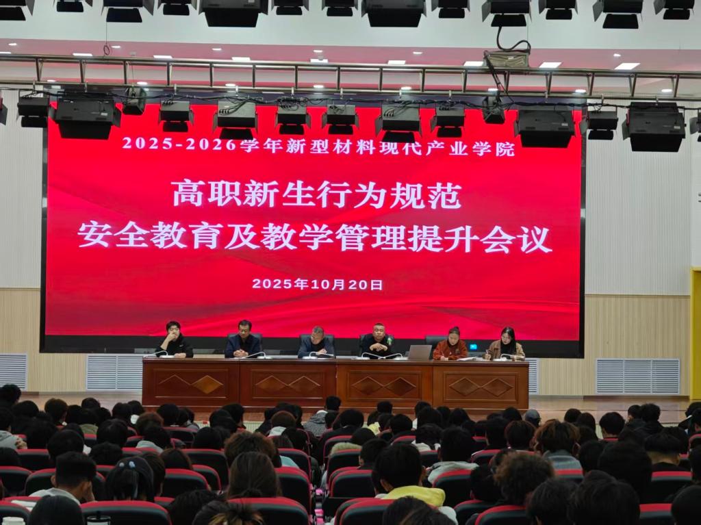 為了幫助新生快速適應大學生活,明確成長目標,規(guī)劃學業(yè)生涯,筑牢安全防線,新型材料現(xiàn)代產(chǎn)業(yè)學院于2025年10月20日在實訓樓報告廳召開2025級新生學生管理工作大會。