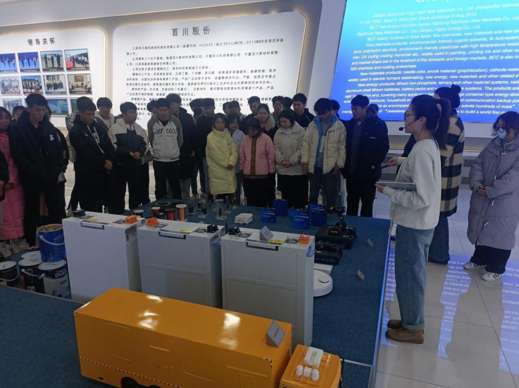 乘車抵達(dá)后,企業(yè)技術(shù)人員熱情地接待了師生一行。在工作人員帶領(lǐng)下,同學(xué)們參觀了企業(yè)展廳,詳細(xì)了解了企業(yè)文化、發(fā)展歷程、研發(fā)實(shí)力、系列產(chǎn)品以及寧夏百川新材料有限公司鋰電產(chǎn)業(yè)集群。在生產(chǎn)車間,工程師為同學(xué)們?cè)敿?xì)講解了石墨的特性、石墨的罐裝和焙燒以及安全操作規(guī)程等,使同學(xué)們對(duì)石墨新材料的整個(gè)生產(chǎn)流程有了更加深入的了解。