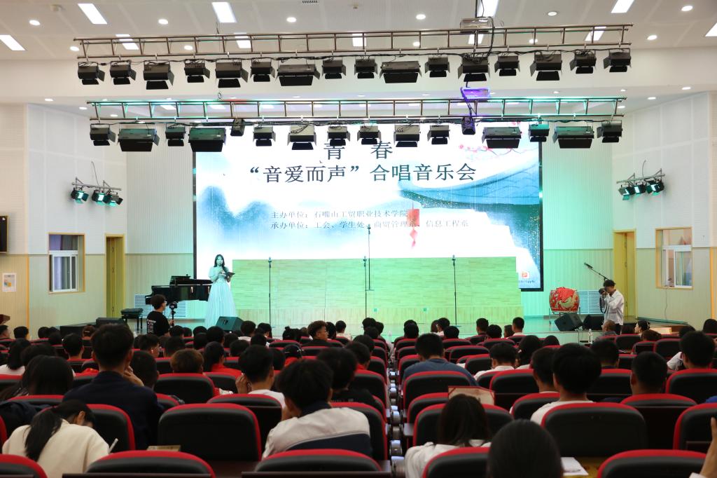 音韻回響,樂動(dòng)校園。5月20日下午石嘴山工貿(mào)職業(yè)技術(shù)學(xué)院實(shí)訓(xùn)樓報(bào)告廳如同歌聲的海洋、音樂的殿堂。