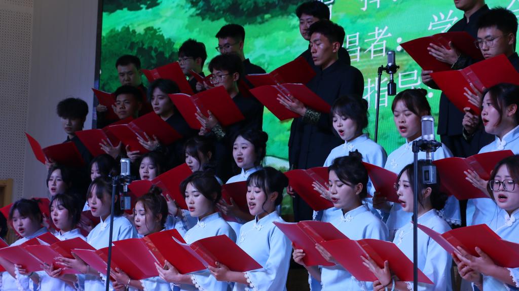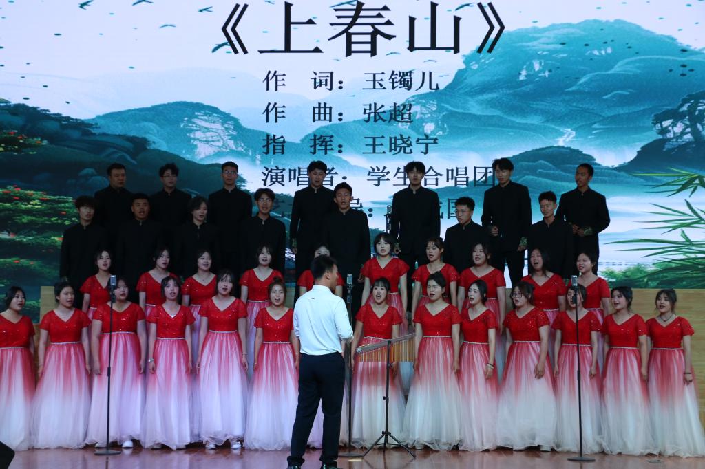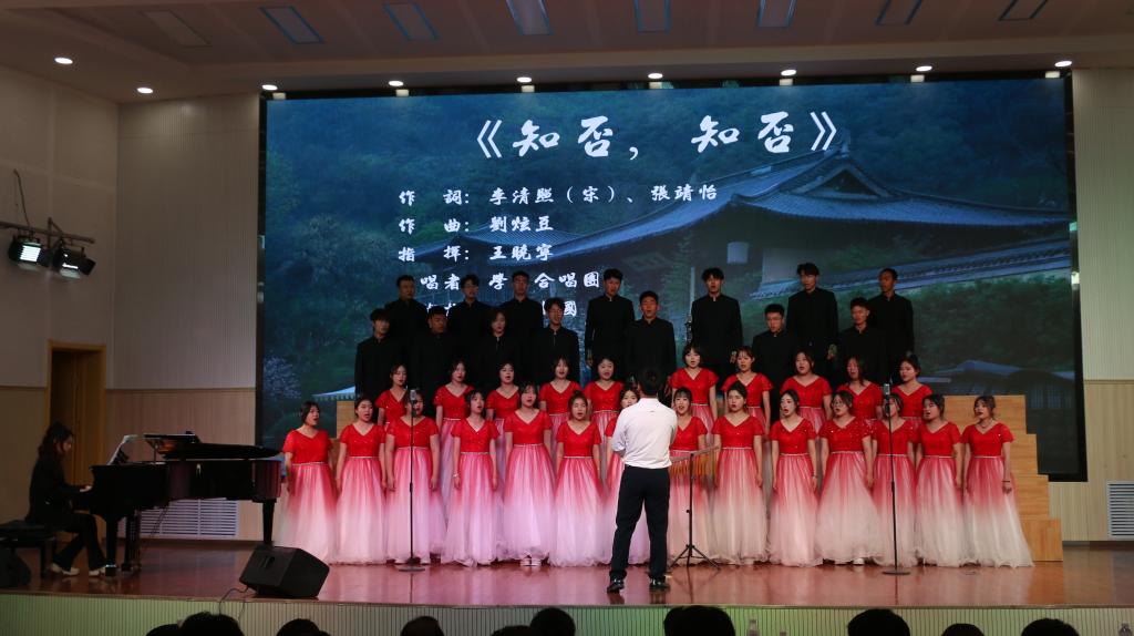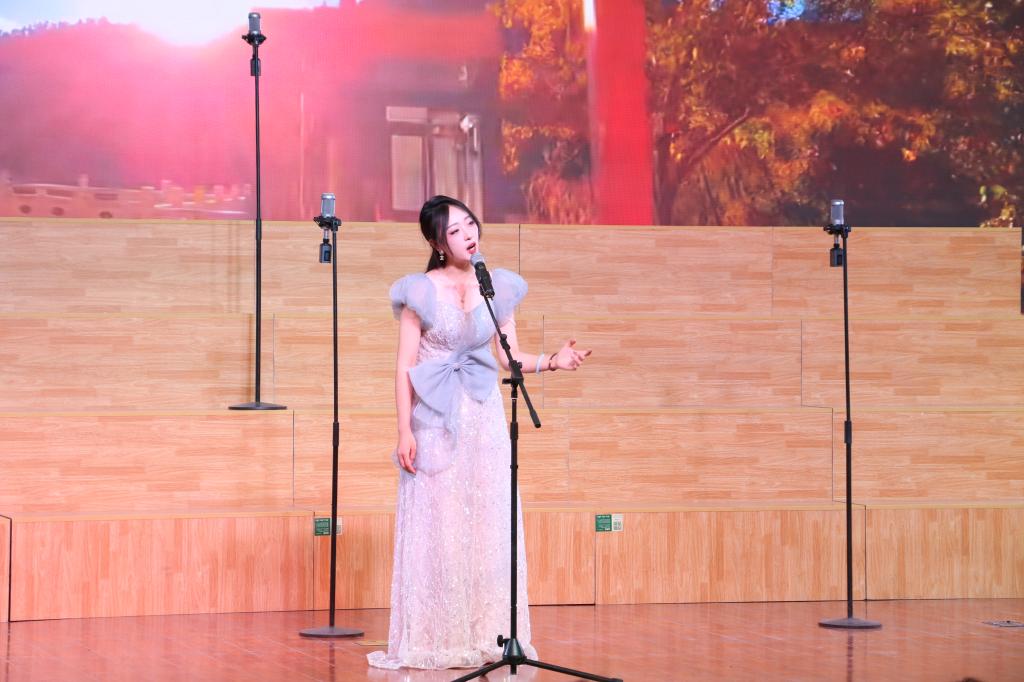 學(xué)生合唱團(tuán)演唱的五首合唱歌曲,讓觀眾沉醉于音樂的極致魅力中,將觀眾帶入美妙絕倫的音樂世界,學(xué)院音樂教師王曉寧一曲蕩氣回腸的《蝶戀花·檻菊愁煙蘭泣露》將現(xiàn)場氣氛推向了高潮,收獲了全場觀眾的熱烈掌聲和經(jīng)久不息的喝彩聲。