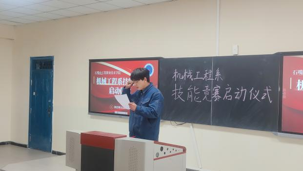 技能競賽啟動儀式由機械工程系副主任馬娜主持,機械工程系副主任蘭晏文致開幕詞,裁判教師代表張睿鵬、參賽選手代表王昊分別作了表態(tài)發(fā)言,各賽項負責(zé)教師及全體參賽選手參加本次活動。