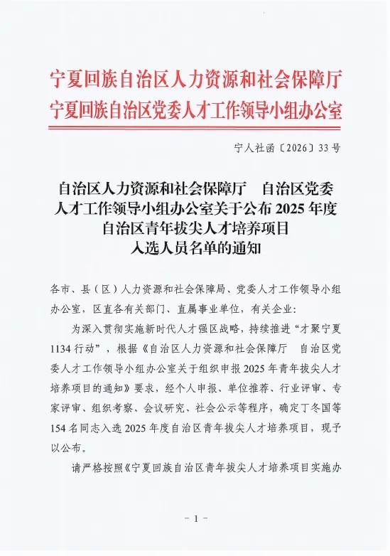近日,自治區(qū)人力資源和社會保障廳、自治區(qū)黨委人才工作領(lǐng)導(dǎo)小組辦公室印發(fā)了《關(guān)于公布2025年度自治區(qū)青年拔尖人才培養(yǎng)項(xiàng)目入選人...